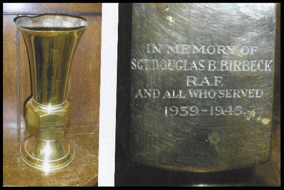 We believe that the brass memorial vase that stands on the War Memorial in St. John's Church was commissioned by Douglas' maternal Grandparents. Douglas' had the middle name of Brigg which was also his Grandmother's maiden name.